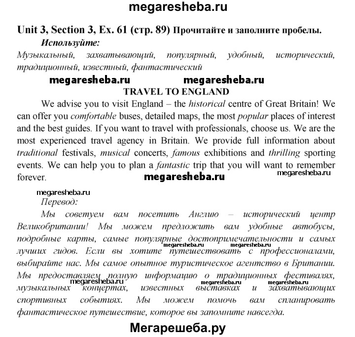 ГДЗ по английскому языку 6 класс Биболетова Enjoy English unit 3 exercise - 61