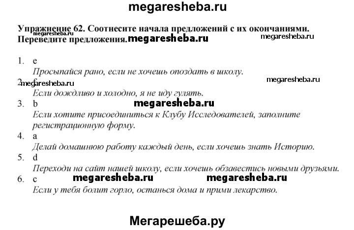 Подробный решебник (ГДЗ) по Английскому языку за 6 (шестой) класс Enjoy English - готовый ответ unit 3 exercise - 62. Авторы учебника: Биболетова, Денисенко, Трубанева. Издательство: Титул 2015-2023.