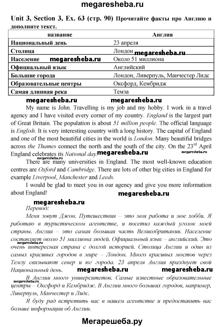 ГДЗ по английскому языку 6 класс Биболетова Enjoy English unit 3 exercise - 63