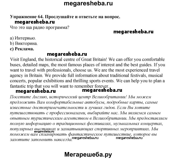 ГДЗ по английскому языку 6 класс Биболетова Enjoy English unit 3 exercise - 64
