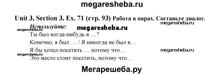 Подробный решебник (ГДЗ) по Английскому языку за 6 (шестой) класс Enjoy English - готовый ответ unit 3 exercise - 71. Авторы учебника: Биболетова, Денисенко, Трубанева. Издательство: Титул 2015-2023.
