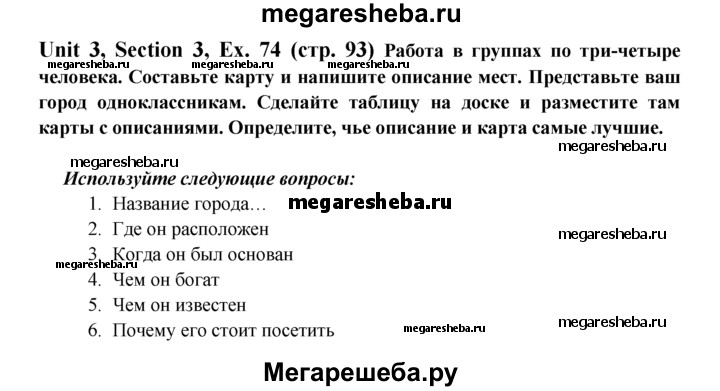 Подробный решебник (ГДЗ) по Английскому языку за 6 (шестой) класс Enjoy English - готовый ответ unit 3 exercise - 74. Авторы учебника: Биболетова, Денисенко, Трубанева. Издательство: Титул 2015-2023.