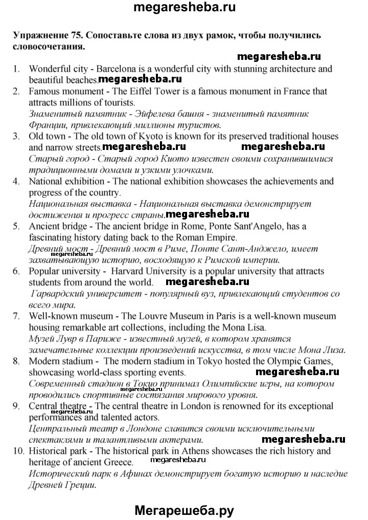 ГДЗ по английскому языку 6 класс Биболетова Enjoy English unit 3 exercise - 75