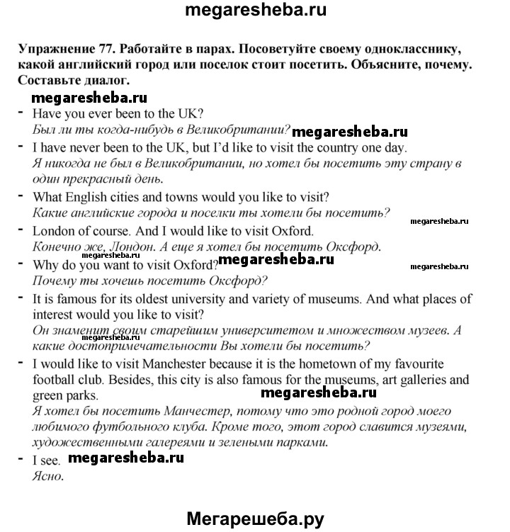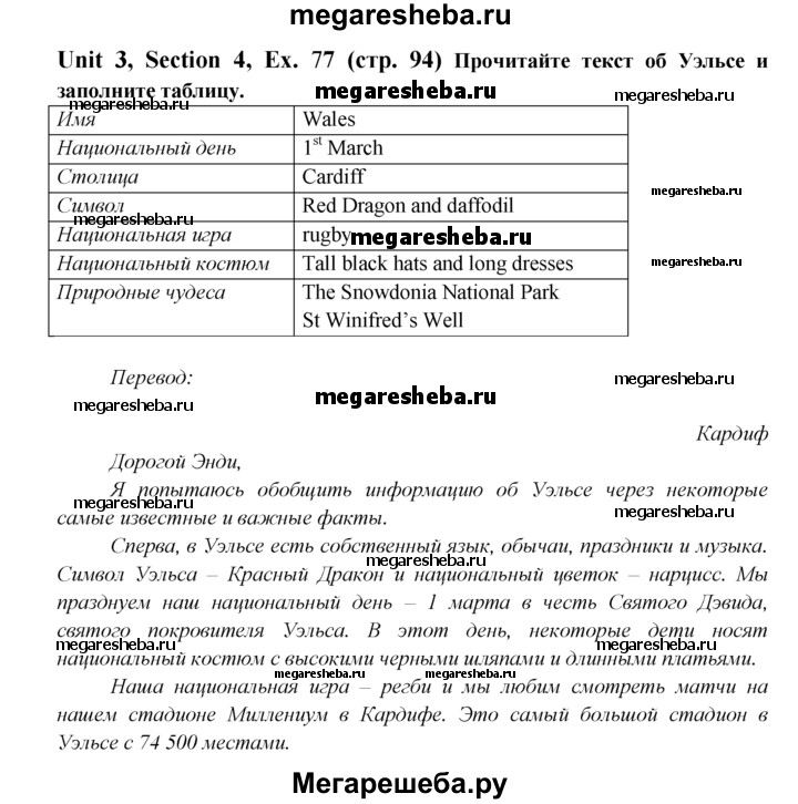 ГДЗ по английскому языку 6 класс Биболетова Enjoy English unit 3 exercise - 77