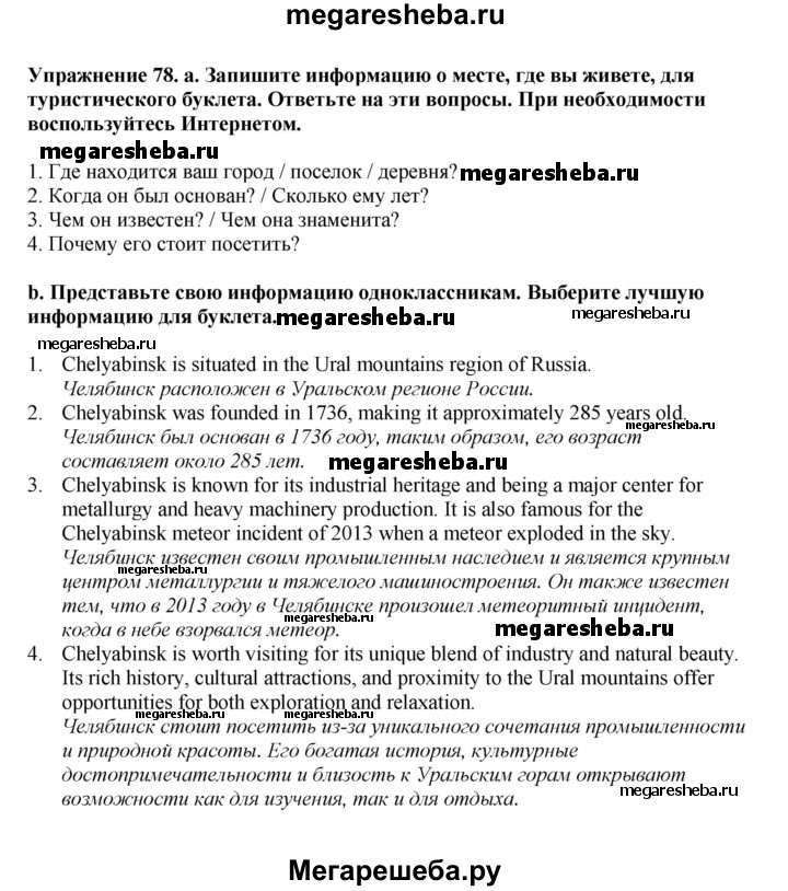 ГДЗ по английскому языку 6 класс Биболетова Enjoy English unit 3 exercise - 78