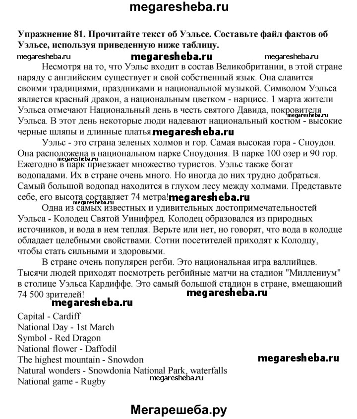 ГДЗ по английскому языку 6 класс Биболетова Enjoy English unit 3 exercise - 81