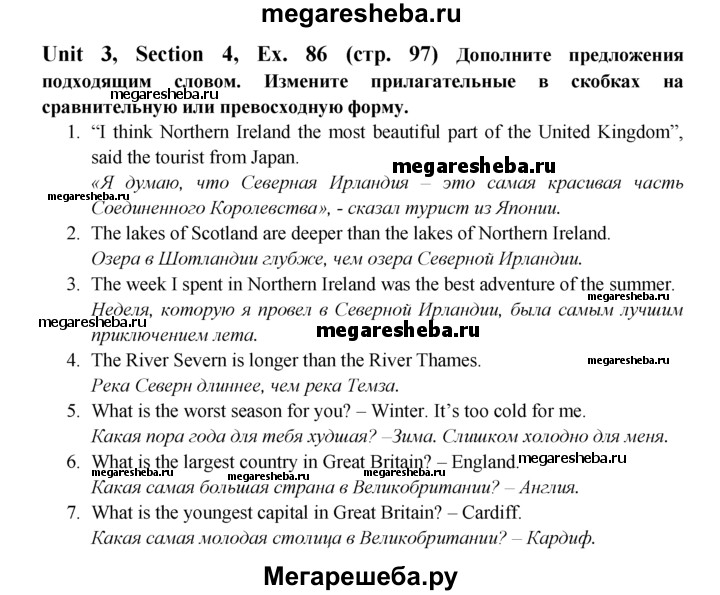 ГДЗ по английскому языку 6 класс Биболетова Enjoy English unit 3 exercise - 86
