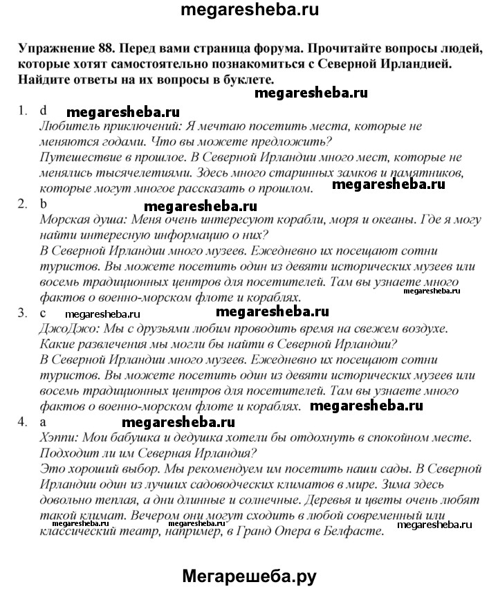 ГДЗ по английскому языку 6 класс Биболетова Enjoy English unit 3 exercise - 88
