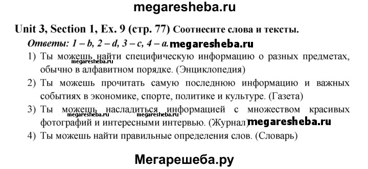 ГДЗ по английскому языку 6 класс Биболетова Enjoy English unit 3 exercise - 9