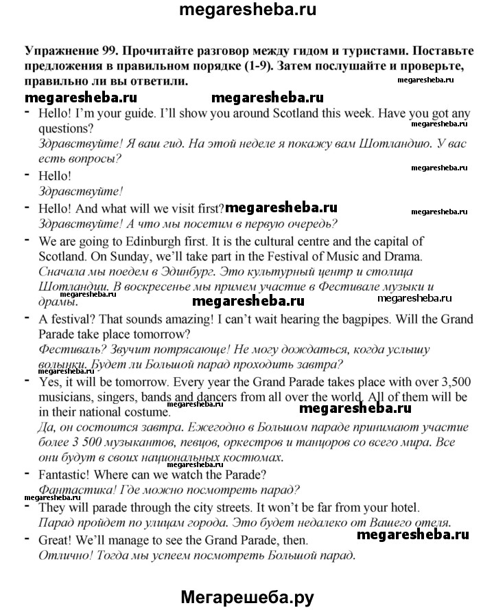 ГДЗ по английскому языку 6 класс Биболетова Enjoy English unit 3 exercise - 99