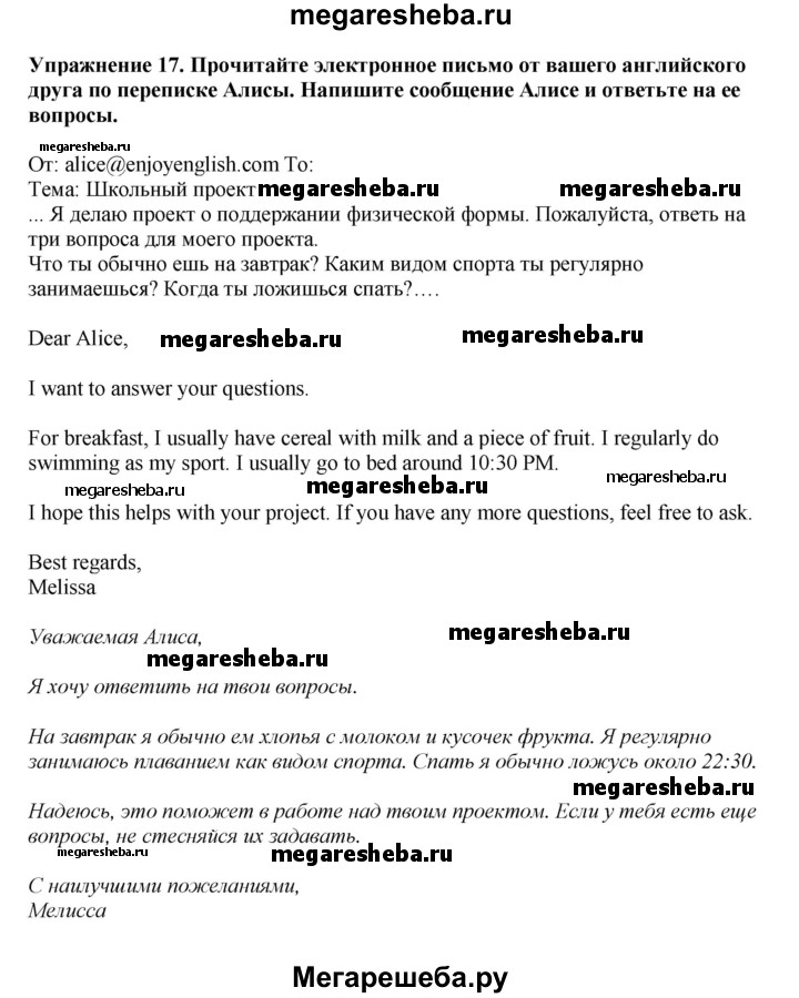 ГДЗ по английскому языку 6 класс Биболетова Enjoy English unit 4 exercise - 17