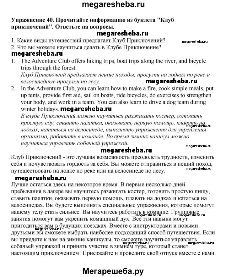 ГДЗ по английскому языку 6 класс Биболетова Enjoy English unit 4 exercise - 40