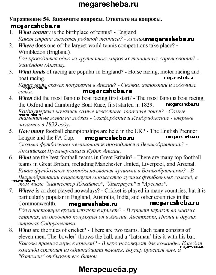 ГДЗ по английскому языку 6 класс Биболетова Enjoy English unit 4 exercise - 54