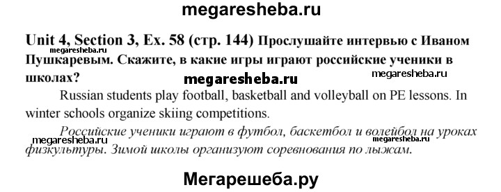 Подробный решебник (ГДЗ) по Английскому языку за 6 (шестой) класс Enjoy English - готовый ответ unit 4 exercise - 58. Авторы учебника: Биболетова, Денисенко, Трубанева. Издательство: Титул 2015-2023.