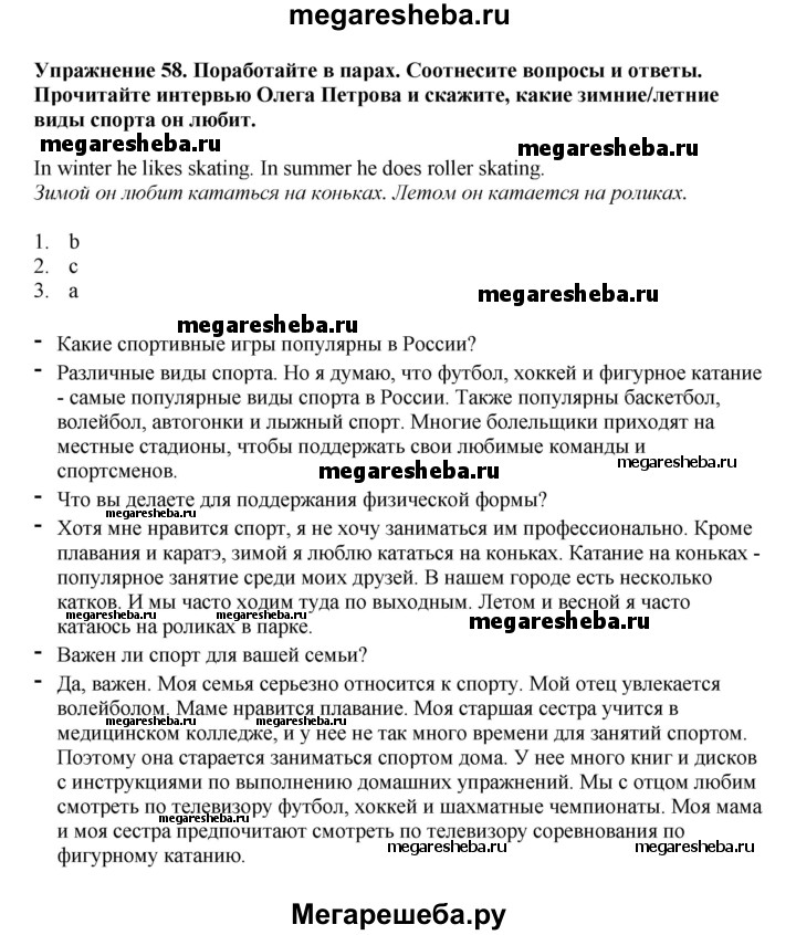 ГДЗ по английскому языку 6 класс Биболетова Enjoy English unit 4 exercise - 58