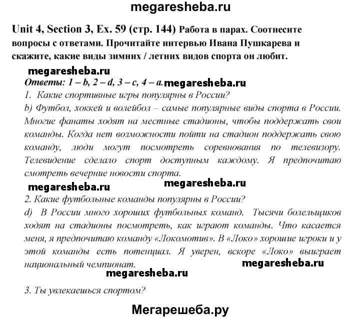 Подробный решебник (ГДЗ) по Английскому языку за 6 (шестой) класс Enjoy English - готовый ответ unit 4 exercise - 59. Авторы учебника: Биболетова, Денисенко, Трубанева. Издательство: Титул 2015-2023.
