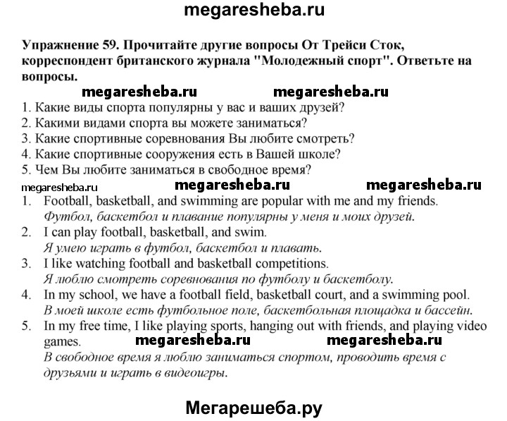 ГДЗ по английскому языку 6 класс Биболетова Enjoy English unit 4 exercise - 59