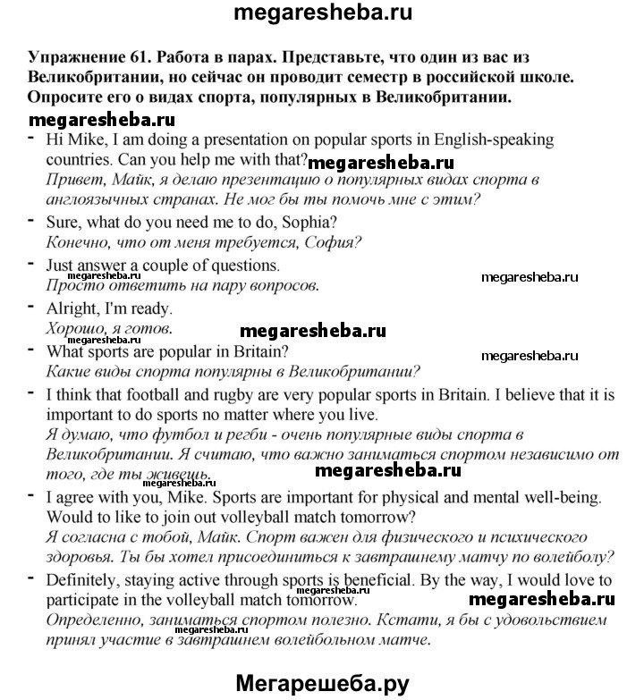 ГДЗ по английскому языку 6 класс Биболетова Enjoy English unit 4 exercise - 61