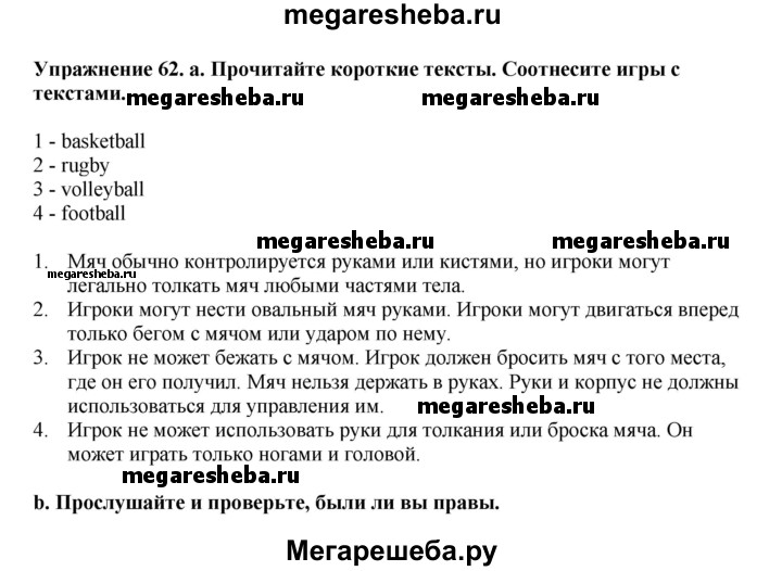 ГДЗ по английскому языку 6 класс Биболетова Enjoy English unit 4 exercise - 62