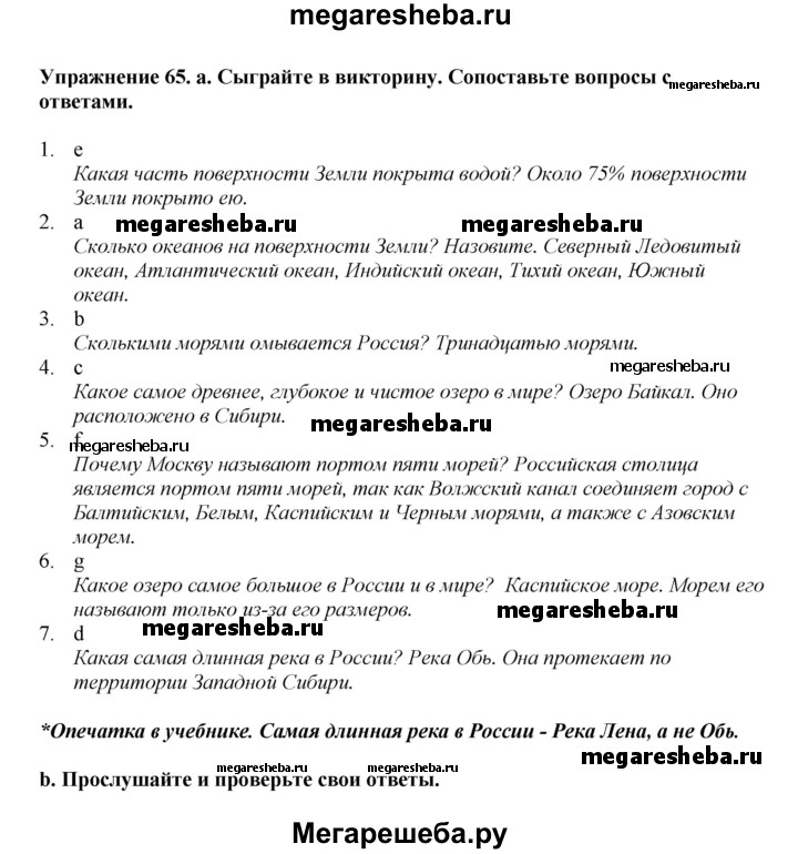 ГДЗ по английскому языку 6 класс Биболетова Enjoy English unit 4 exercise - 65