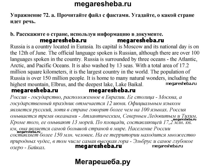 ГДЗ по английскому языку 6 класс Биболетова Enjoy English unit 4 exercise - 72