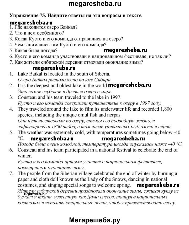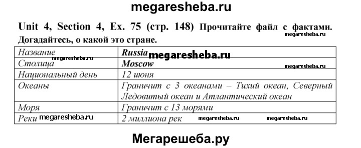 ГДЗ по английскому языку 6 класс Биболетова Enjoy English unit 4 exercise - 75