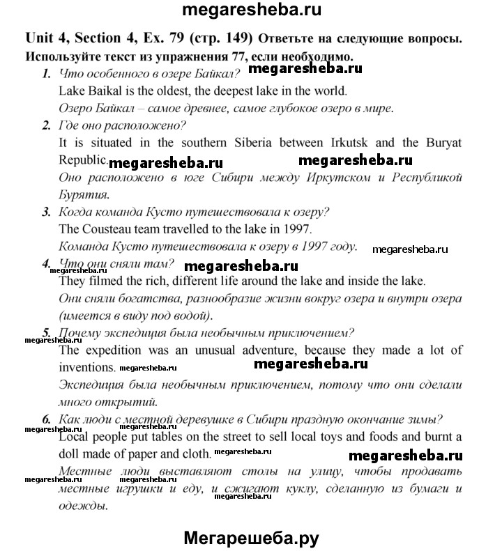 Подробный решебник (ГДЗ) по Английскому языку за 6 (шестой) класс Enjoy English - готовый ответ unit 4 exercise - 79. Авторы учебника: Биболетова, Денисенко, Трубанева. Издательство: Титул 2015-2023.