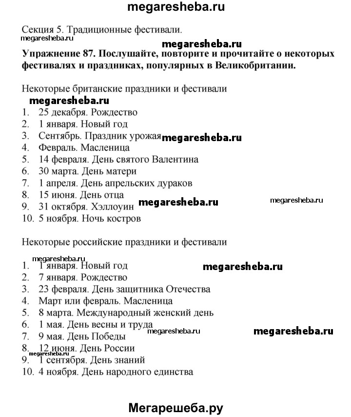ГДЗ по английскому языку 6 класс Биболетова Enjoy English unit 4 exercise - 87
