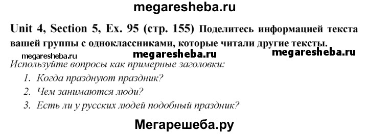 ГДЗ по английскому языку 6 класс Биболетова Enjoy English unit 4 exercise - 95