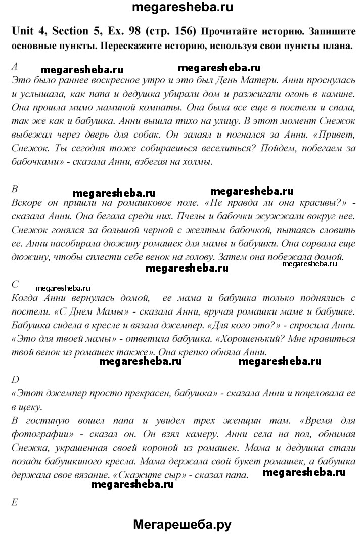 ГДЗ по английскому языку 6 класс Биболетова Enjoy English unit 4 exercise - 98