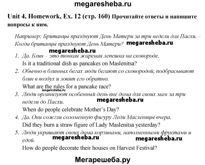 Подробный решебник (ГДЗ) по Английскому языку за 6 (шестой) класс Enjoy English - готовый ответ unit 4 homework - 12. Авторы учебника: Биболетова, Денисенко, Трубанева. Издательство: Титул 2015-2023.