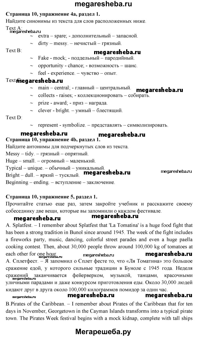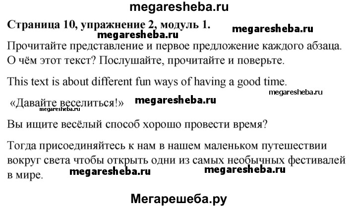 Подробный решебник (ГДЗ) по Английскому языку за 9 (девятый) класс spotlight - готовый ответ страница - 10. Авторы учебника: Ваулина, Дули, Подоляко, Эванс. Издательство: Просвещение 2015-2025.