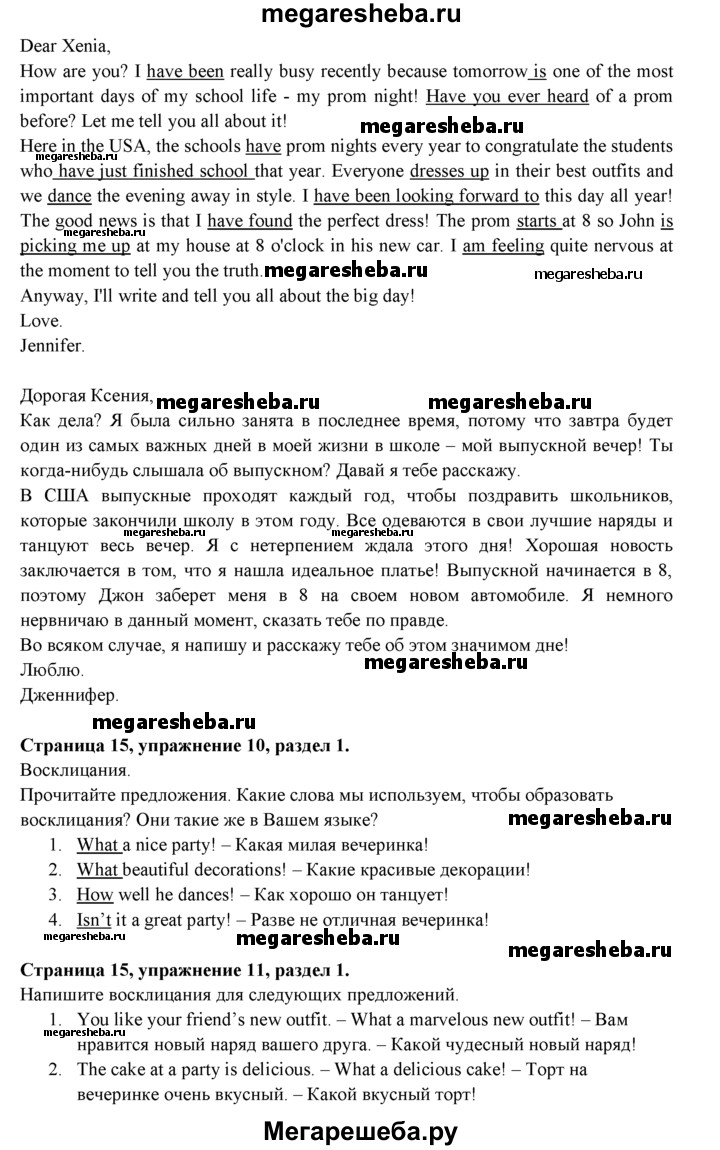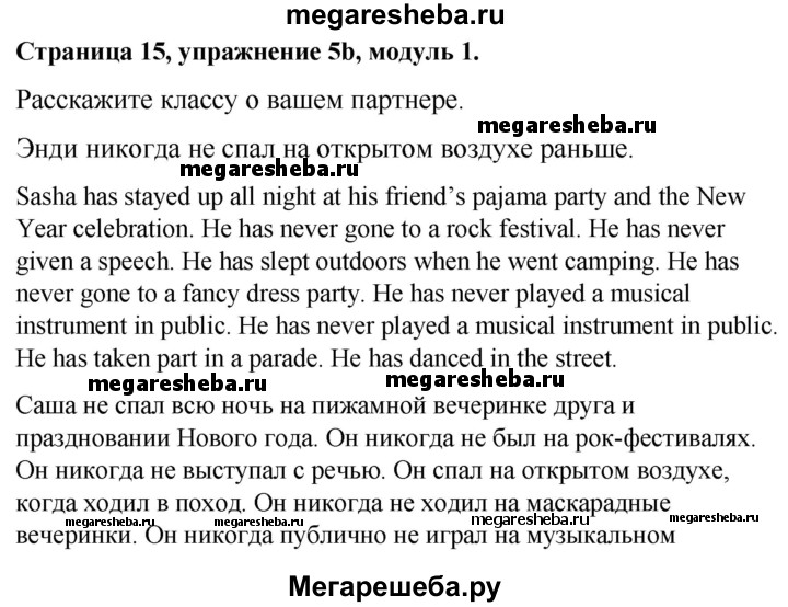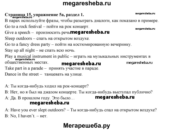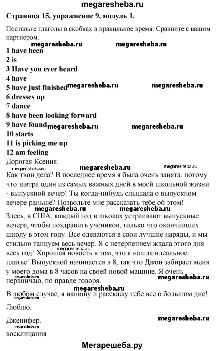 Подробный решебник (ГДЗ) по Английскому языку за 9 (девятый) класс spotlight - готовый ответ страница - 15. Авторы учебника: Ваулина, Дули, Подоляко, Эванс. Издательство: Просвещение 2015-2025.