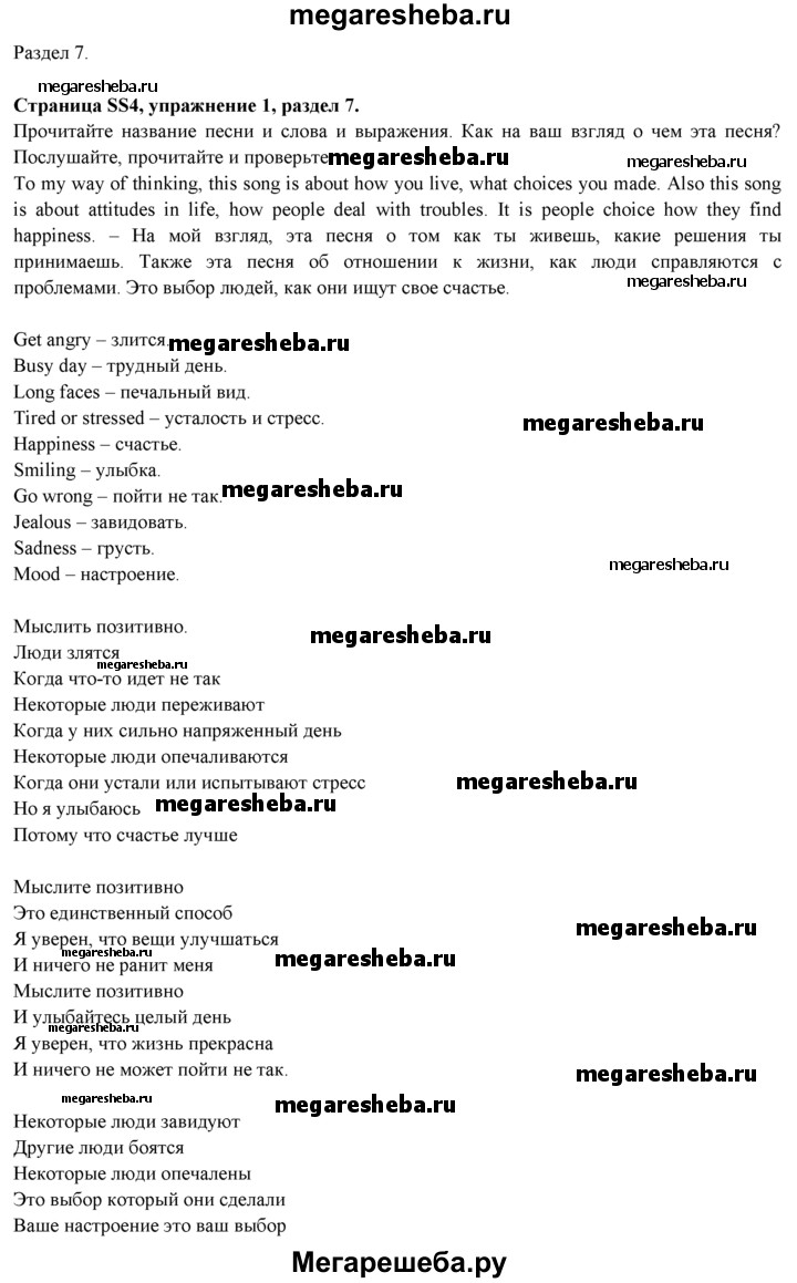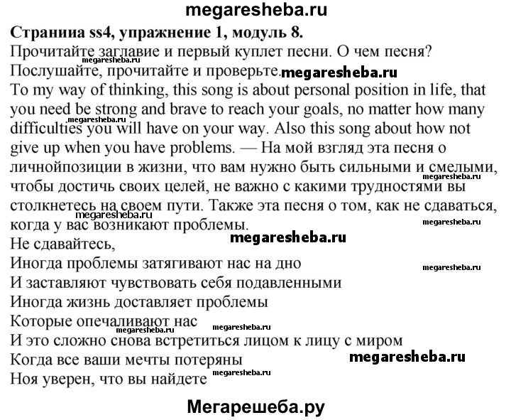 ГДЗ по английскому языку 9 класс Ваулина spotlight song sheets - ss4