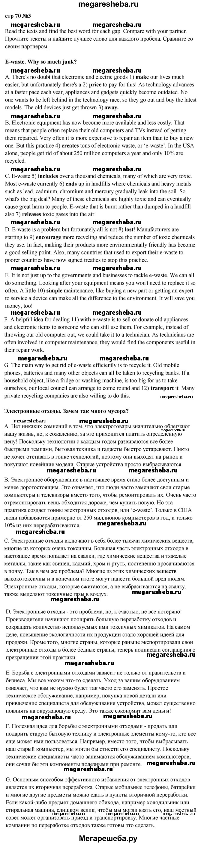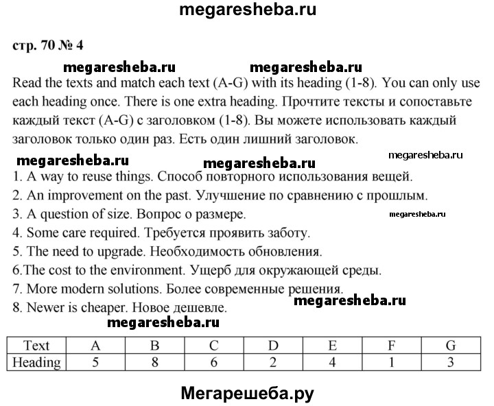 Подробный решебник (ГДЗ) по Английскому языку за 9 (девятый) класс spotlight - готовый ответ страница - 70. Авторы учебника: Ваулина, Дули, Подоляко, Эванс. Издательство: Просвещение 2015-2025.