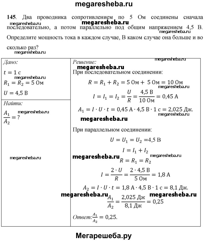 Подробный решебник (ГДЗ) по Физике за 8 (восьмой) класс - готовый ответ задача - 145. Авторы учебника: Громов, Родина, Белага, Ломаченков, Панебратцев. Издательство: Просвещение 2018.