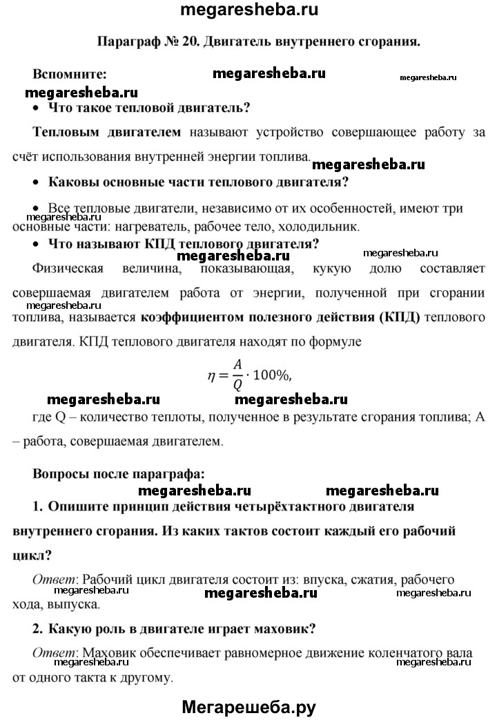 ГДЗ по физике 8 класс Громов вопросы - §20