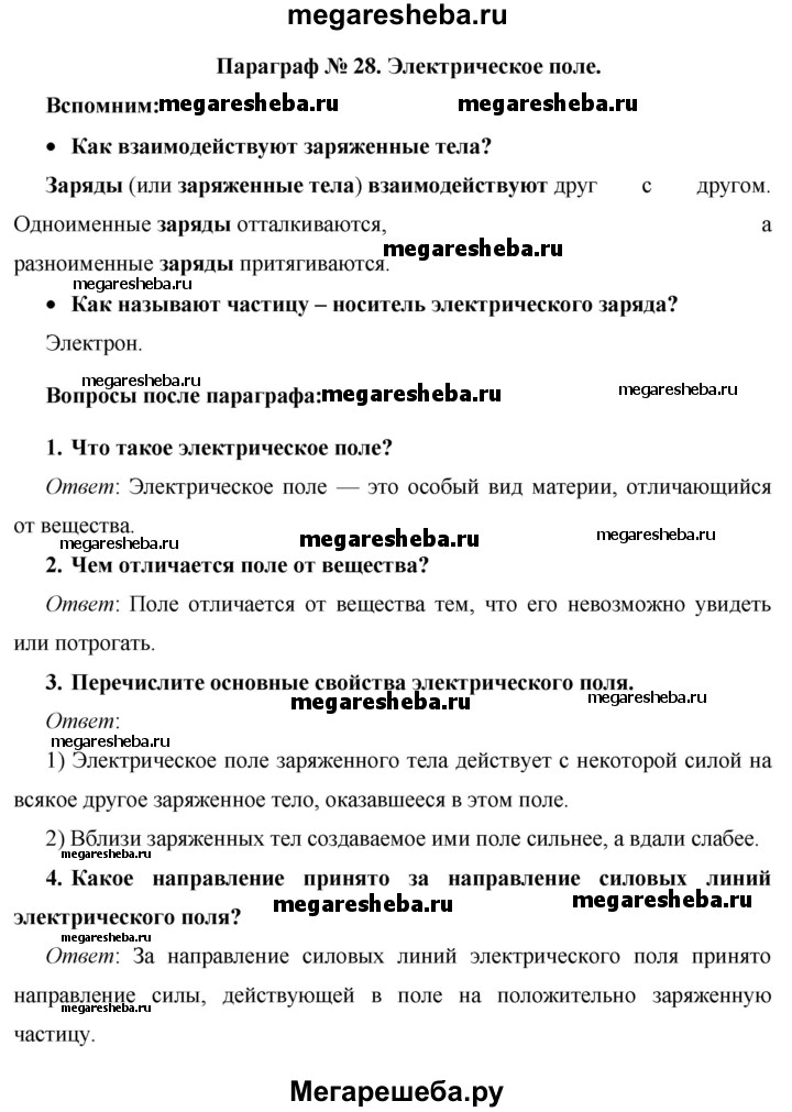 ГДЗ по физике 8 класс Громов вопросы - §28