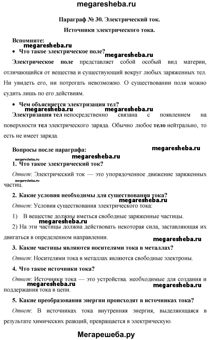 ГДЗ по физике 8 класс Громов вопросы - §30