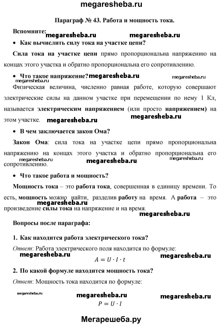 Подробный решебник (ГДЗ) по Физике за 8 (восьмой) класс - готовый ответ вопросы - §43. Авторы учебника: Громов, Родина, Белага, Ломаченков, Панебратцев. Издательство: Просвещение 2018.