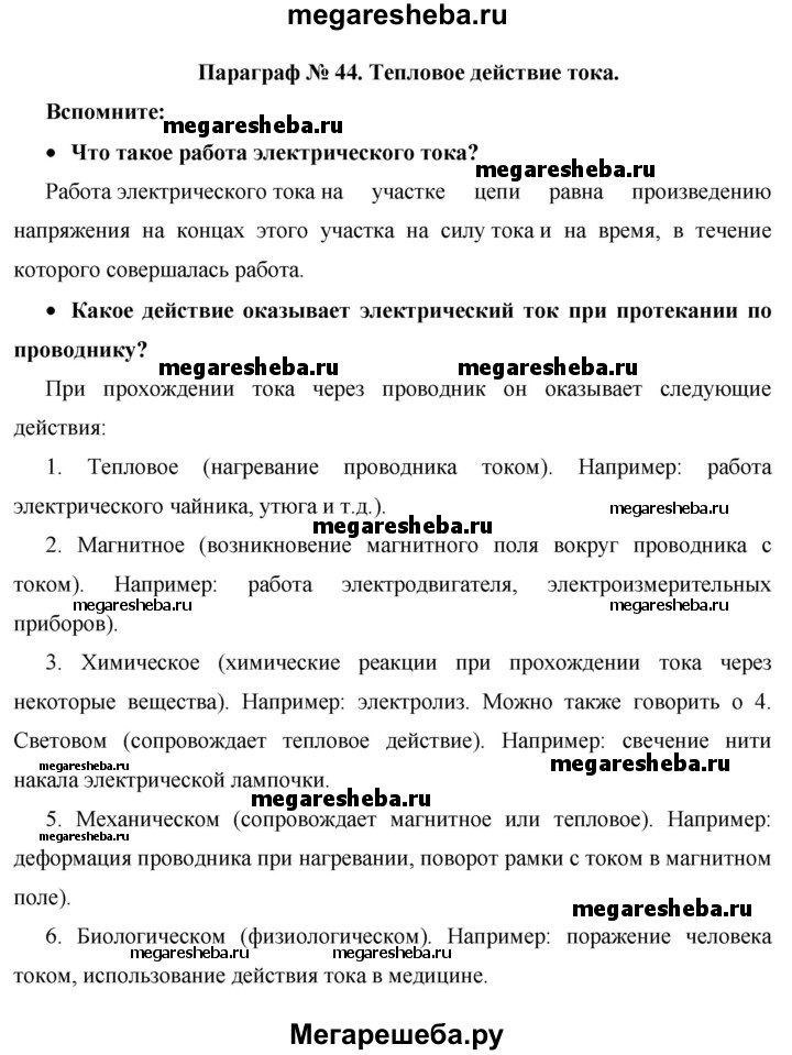 ГДЗ по физике 8 класс Громов вопросы - §44