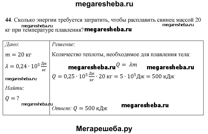 Подробный решебник (ГДЗ) по Физике за 8 (восьмой) класс - готовый ответ задача - 44. Авторы учебника: Громов, Родина, Белага, Ломаченков, Панебратцев. Издательство: Просвещение 2018.