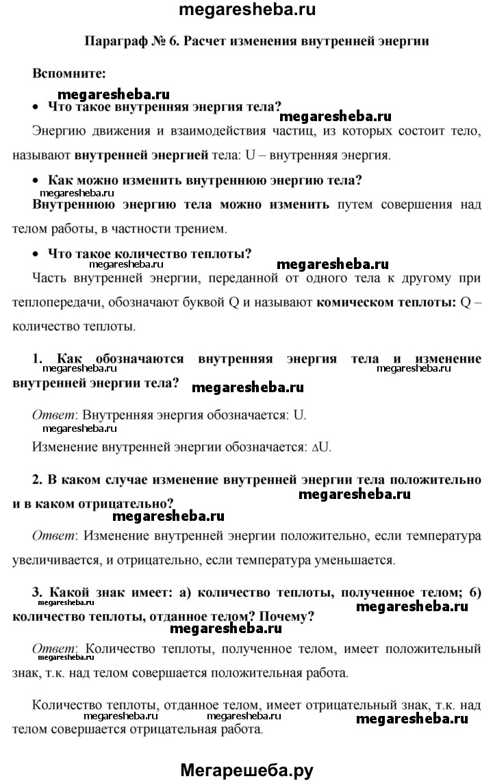 ГДЗ по физике 8 класс Громов вопросы - §6
