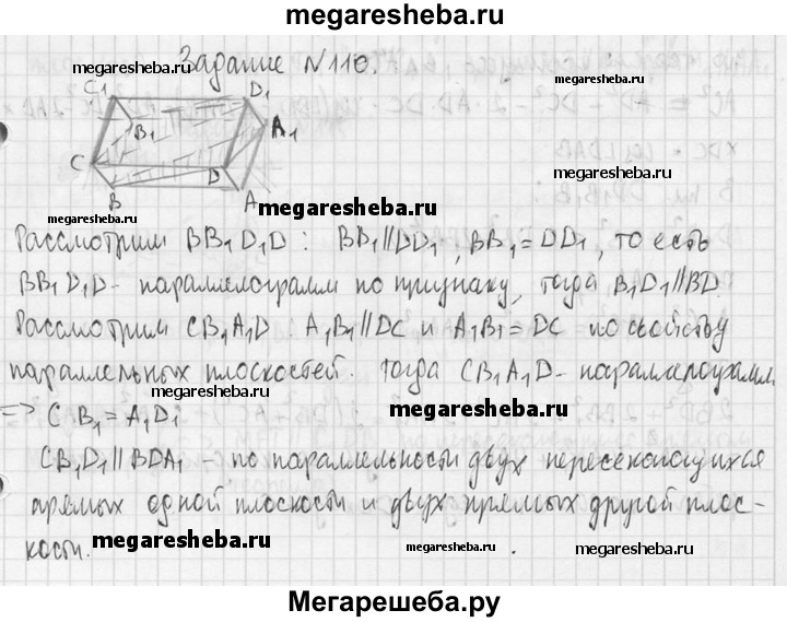 110. Докажите, что в параллелепипеде ABCDA₁B₁C₁D₁ плоскость A₁DB параллельна плоскости D₁CB₁.