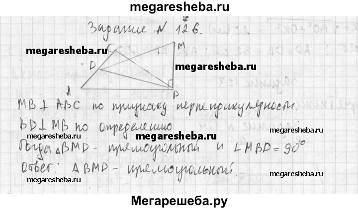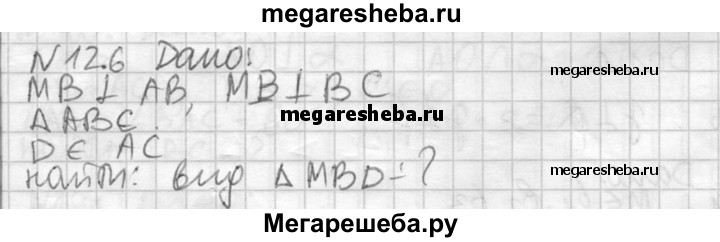 126. Прямая MB перпендикулярна к сторонам АВ и ВС треугольника ABC. Определите вид треугольника MBD, где D — произвольная точка прямой АС.