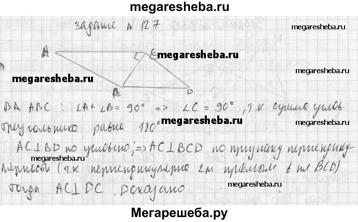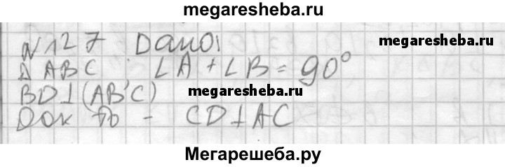 127. В треугольнике ABC сумма углов А и В равна 90°. Прямая BD перпендикулярна к плоскости ABC. Докажите, что CD перпендикулярна АС.
