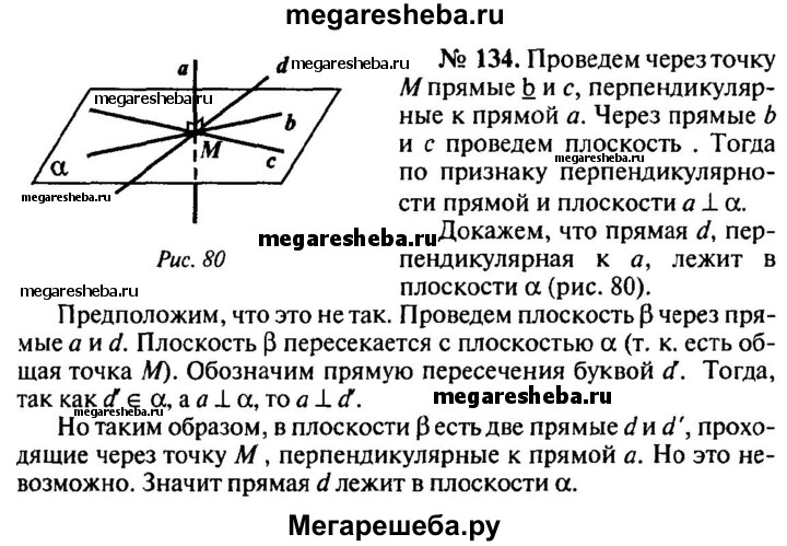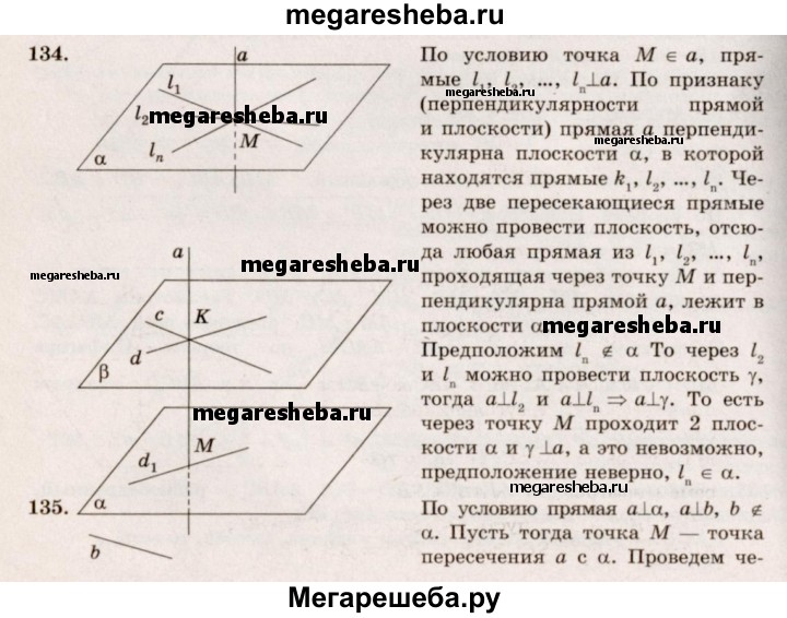 134. Докажите, что все прямые, проходящие через данную точку М прямой а и перпендикулярные к этой прямой, лежат в плоскости, проходящей через точку М и перпендикулярной к прямой а.
