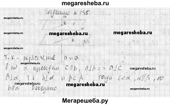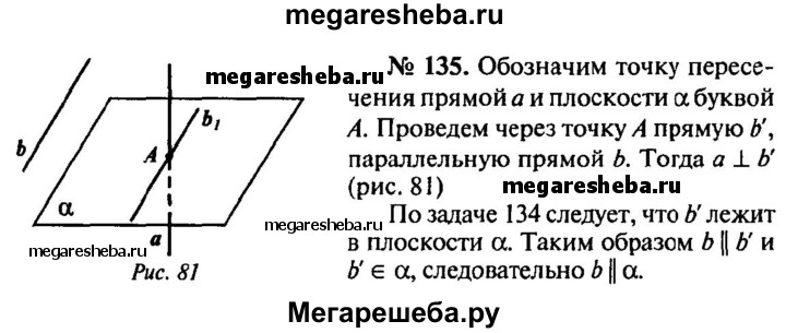 135. Прямая а перпендикулярна к плоскости α и перпендикулярна к прямой b, не лежащей в этой плоскости. Докажите, что b параллельна а.