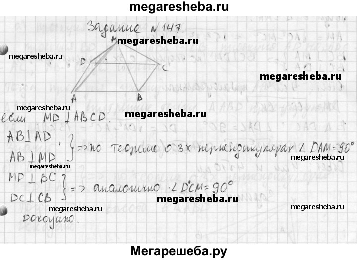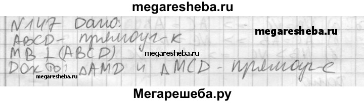 147. Из точки М проведен перпендикуляр MB к плоскости прямоугольника ABCD. Докажите, что треугольники AMD и MCD прямоугольные.