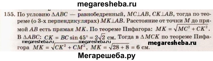 Подробный решебник (ГДЗ) по Геометрии за 10‐11 (десятый‐одиннадцатый) класс - готовый ответ 10 класс - 155. Авторы учебника: Атанасян, Бутузов, Кадомцев, Киселева, Позняк, Базовый и углубленный уровень. Издательство: Просвещение 2015-2023.